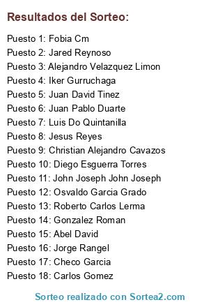 Lista de participantes: Abel David, Alejandro Velazquez Limon, Carlos Gomez, Checo Garcia, Christian Alejandro Cavazos, Diego Esguerra Torres, Fobia Cm, Gonzalez Roman, Iker Gurruchaga, Jared Reynoso, Jesus Reyes, John Joseph John Joseph, Jorge Rangel, Juan David Tinez, Juan Pablo Duarte, Luis Do Quintanilla, Osvaldo Garcia Grado, Roberto Carlos Lerma.