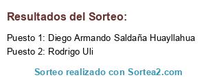 Lista de participantes: juan mendoza, Hector Salazar Castañeda, Víctor Santisteban yacsavilca, Wilfredo Requena Silva, Ysai Parillo, leoncio Antonio gomez, Ulisse Fillipo Cristian Bozzo Cuadra, Guillermo Arana Febres, Helkin Agusto Huamanta Paucar, Diego Armando Saldaña Huayllahua, Alberto Cayampi García, Luis Alberto Taboada, Jorge Rosales, Elmer Contreras Rodriguez, jorge abarca carrion, Joseluis Polanco Castro, Rodrigo Uli, Jair Calderón Huánuco, Cesar Dorian Rupa Caviedes, Carlos Victor Alegria, Orlando Puclla Cueto, Rosa Isabel Atoche ordinola, Carlos Pereira Bartra, Juan Alberto Huanachin Ttito, Raul Poma, Jose Maria Asto, Carlos Vargas Sancho, Francisco Fernando Llontop Chapoñan, Borivalsac, Fernando Sanchez Mendoza, Luis Alberto Puican Ucañay, Jorge Perez, Michayl Mamani Pariguana, SORTEO, FULL_NAME, Juan Carlos Machaca, Walter Edgar Bustamante Castellares, Ricardo Ramos Torres, Rolando Altamirano Muñoz, Percy Ernesto Vargas Belito, Milagros, Jhoanita Flores Pacaya, Darwin Carlos Benavente Quispe, Luis Linares Villavicencio, Daniel Mena Querevalú, Wabloche Edgar Cahuapas Perez, Carlos Vela, Tania Lisbeth Villegas, Robinson Alex Palomino Ochoa, Welerme Inga Bruno, Antonio Bartolo Cochachez, Tatiana Cutimbo Rojas, Guillermo Arana Febres, Katherine Araceli calizaya santamaria, clever Huaman chilingano, Félix Apolinario Carrera, Hugo Salas Torres, EUSEBIO DEYBIS FARROÑAY IRIGOYEN, Miguel Angel Curitumay Cueva, francisco.