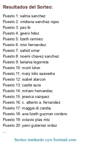 Lista de participantes: efren rodriguez, maggie di candia, ana lizeth guzman cordero, issrael gonzaleez, sarahi muñoz de cabañas, leonardo moreno, emir canales, lizeth ramirez, claudia nuñez, fati juarez, hazel di plata, dianita deedee, noemi chavez sanchez, anabel ramirez hernandez, bere rios , viridiana sanchez rojas, viviana arroyo, ala garcia de vite, val mejia, abi chavez soberanes, marko olivares guzman, misael septimo, isabel alarcon, mary lolis saavedra, adrian yañez, juancho arevalo, kari ishihara, karen hernandez avila, ix u ganesha, lunita cruz, brisia infante cruz, mimi islas ambriz, hernandez angeles annie, alexizz mendoza, noris chavez tetetla, betania legorreta, itmar diaz, gama gamiux gamiux, geero hdez, yozelin marron, magaly kuenca, luis j fernandez manzano, nadia betanzitos, luz ma de gutierrez, estefany rodriguez, monse resendiz villa, luis cureño, angeles velasquez, ezl glendy, brenda enciso, vanessa li, betty gonzalez, brianda luna reyes, alberto guerrero, aline gutierrez garnica, maria monroy, au pm, rita oaxaca, estefany hdez, yazmin juarez garcia, magin larus, octavio plas mtz, rafael zeeus, abyzz garcia olvera, pao lb, mont luher, katniss tomorrowland, sandy liz, gaby arbeu, mike palma, anny miranda, miriam hernandez, iarasysus chl, ricardo garcia, misi hernandez, yami gutierrez ordaz, esito aleman, magda garcia, roman lopez, gabo garcia, sahiid omar, salma sanchez, jessica vazquez, miguel nochebuena, carlos andres islas maldonado, lhiiz kaxhiito, kaminn lr, fernanda islas, fenrir sandoval, estefania c. ordaz, johana perez, giovanni m. lugo, c. alberto a. fernandez, ale vg, guadalupe hernandez arellano, aldredo avila calero, lorena calderon, dennis pasten, paty plascencia soto, marco antonio sanjuan, gaby hernandez, castle aura, corayma martinez, victor eduardo ml, xochitl fuentes, fabiola martinez.