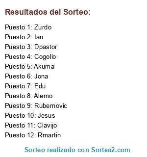 Lista de participantes: Alemo, Jesus, Rmartin, Rubernovic, Edu, Dpastor, Clavijo, Akuma, Cogollo, Ian, Zurdo, Jona.