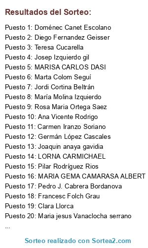 Lista de participantes: Violeta López Navarro, Claudia Ribelles Galiana, Ferran González Murciano, Avelina Sanjurjo Paderne, Eduardo Serra Bartual, Tàlia Alabadí, Miguel Agulló, Estefanía Sánchez Botello, Ana Salvador López, Marisa Carlos, Ricardo Montull Crespo, Mayte Mas Soler, Fernando Tafalla García, Montse Del Toro Lora, Natividad Gallego Lopez, Jose Manuel Pastor, Júlia Raga Vicente, Laura Tuset Hurtado, Doménec Canet Escolano, Ana Vicente Rodrigo, Pedro J. Cabrera Bordanova, Pepa Navarro Ribera, Adela real saiz, Adolfo Pablos Berzosa, Jordi Cortina Beltrán, Natalia Cezón Serrano, Julián Pascual del Pobil, Carolina Peñafiel Pérez, Marta Colom Seguí, Sergi Lutsyshyn Kaschuk, María Molina Izquierdo, Josè Enrique Monserrat, Carmen Iranzo Soriano, Mari Carmen Quereda García, M.carmen Martínez granell, Vicente Zurita, Rosa Maria Ortega Saez, Inmaculada Navarro Cervera, Javier García Sánchez, Jose Navarro Rodriguez, Pilar Rodríguez Rios, LORNA CARMICHAEL, Loli Romero Rubio, Teresa Cucarella, Michael Elmer Bajaña Bobadilla, Estanislao Sánchez Monfort, Maria Pilar Peña Martinez, ANTONIO TORTAJADA OLEA, ELENA DE LA SALUD ABELLÁN, Clotilde Piquer Montaner, Eva gil coll, Ana María Pitarch Góme, Josep Izquierdo gil, Vicente del olmo puchades, Pepa martinez avellan, Iris María Manzano Blasco, Juan Bta Hurtado Boils, Germán López Cascales, M TERESA SÁNCHEZ ZARCA, Ana Linares, María Jesús Castell Campesino, Lola Martínez Sanchez, Elías Sanagustin Garces, Miguel Angel Sanchez Sanchez, Ana Belén Sánchez Navarro, Óscar Vázquez Pérez, Clara Llorca, Vanesa Arribas Argudo, José Luis Arribas Argudo, Paula Izquierdo Altarejos, Mª Teresa López Solera, Roger Ramírez Ribera, MAR MOYA, Noelia Menero García, Joaquin anaya gavidia, Pedro José Cabrera Bordanova, María Dolores Tauste, JOSE MANUEL GAMAZO BALLESTER, María Isabel Maldonado Vilaplana, José Vicente Benítez Caballero, Lorena López Gil, Marisol Rotgla Delhom, MARISA CARLOS DASI, Miguel Ayensa Mazo, Francesc Folch Grau, Paqui Monleón Mañas, Diego Fernandez Geisser, Isabel Silvestre, María Mercedes Segura Mateu, Miriam Macías López, Mayte Tamarit Navarro, Paula Puertos Hernández, Alfredo paterna Murillo, Noelia Navarro López, Maria jesus Vanaclocha serrano, Andrea Doria Aparici, Clara Garcia Mateos, Anca Oprisan, Ricardo Díaz Céspedes, Juan carlos guerrero marti, MARIA GEMA CAMARASA ALBERT, JAVIER VALENTIN ROMERO.