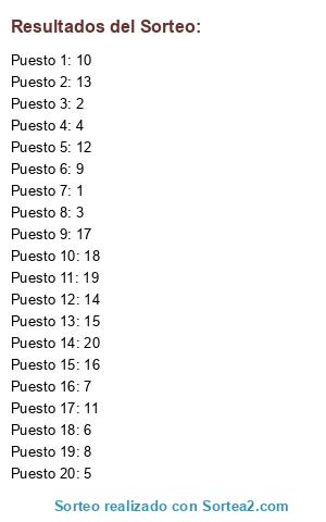 Lista de participantes: 1, 2, 3, 4, 5, 6, 7, 8, 9, 10, 11, 12, 13, 14, 15, 16, 17, 18, 19, 20.