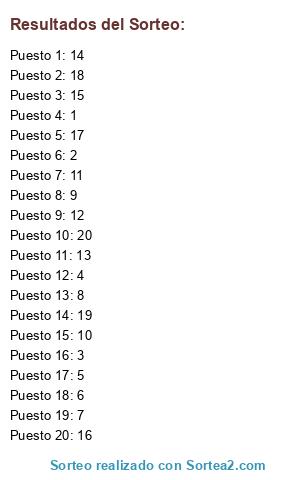 Lista de participantes: 1, 2, 3, 4, 5, 6, 7, 8, 9, 10, 11, 12, 13, 14, 15, 16, 17, 18, 19, 20.