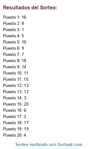 Lista de participantes: 1, 2, 3, 4, 5, 6, 7, 8, 9, 10, 11, 12, 13, 14, 15, 16, 17, 18, 19, 20.