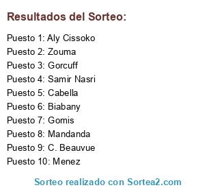 Lista de participantes: Mandanda, Zouma, Aly Cissoko, Cabella, Samir Nasri, Gorcuff, C. Beauvue, Menez, Biabany, Gomis.