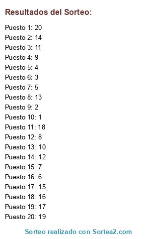 Lista de participantes: 1, 2, 3, 4, 5, 6, 7, 8, 9, 10, 11, 12, 13, 14, 15, 16, 17, 18, 19, 20.