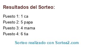 Lista de participantes: 1 ca , 2 chucha , 3 ogn , 4 mama , 5 papa , 6 tia , 7 lela.