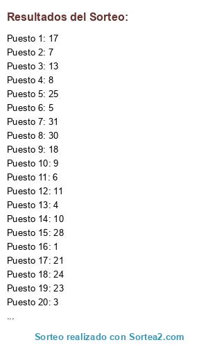Resultados del sorteo: