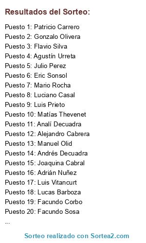 Resultados del sorteo: