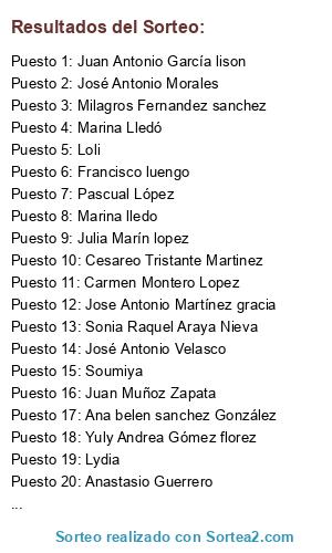 Este sorteo ha sido certificado por Sortea2. Sortea2 garantiza que:
