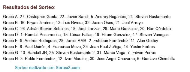 Lista de participantes: Randall Pesamerica, Esteban Fernandez, Pablo FG, Francisco Meza, Andrey Bogantes, Gustavo Chinchilla, Edwin Porras, Paul Quiros Quiros, Andres Rodrigues Mathiew, Randall JR, Allan Steven Godoy Mora, Ivan Morales Estrada, Luis Rivera, Yostin Forbes, Cesar Fallas, Bryan Jiménez, Steven Vanegas Solis, Jordi Lanzas Fonseca, Hiram Gonzalez Azofeifa, Ron Cordoba, Joaf Arroyo Vargas, Javier Sandi, Jean Paul Zuñiga Gutierrez, Steven Bustamante, Steven Bustamante 2, Adrian Steven Seballos Chavarria, Cristhopher Garita, JR Amb, Jose Mario Gonzalez Abarca, José Angel Chavarria, Marco Vega, Jason Oses.