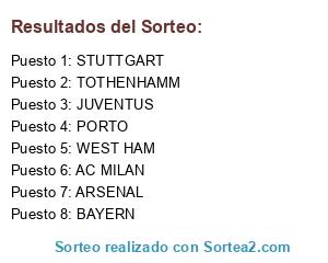 Lista de participantes: AC MILAN, JUVENTUS, ARSENAL, BAYERN, PORTO, WEST HAM, STUTTGART, TOTHENHAMM.