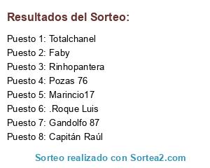 Lista de participantes: Rinhopantera, Pozas 76, .Roque Luis, Faby, Marincio17, Gandolfo 87, Capitán Raúl, Totalchanel.