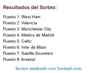 Lista de participantes: Inter de Milan, Atletico de Madrid, Celtic, Manchester City, West Ham, Seattle Sounders, Valencia, Arsenal.