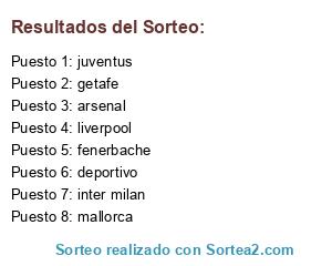 Lista de participantes: getafe, mallorca, liverpool, inter milan, fenerbache, arsenal, deportivo, juventus.