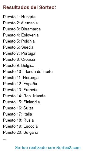 Lista de participantes: España, Paises bajos, Alemania, Portugal, Italia, Croacia, Grecia, Francia, Rusia, Dinamarca, Suiza, Noruega, Suecia, Hungría, Turquia, Rep. Irlanda, Eslovenia, Belgica, Rumania, Escocia, Bulgaria, Polonia, Irlanda del norte, Finlandia, Austria.
