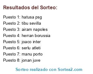 Lista de participantes: jonan juve, serlu atleti, airam napoles, manu porto, joaco inter, herran borussia, hatusa psg, tibu sevilla.