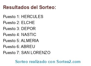 Lista de participantes: ELCHE, SAN LORENZO, NASTIC, DEPOR, HERCULES, ALMERIA, ABREU.