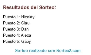 Lista de participantes: Clau, Alexa, Gaby, Nicolay, Dani.