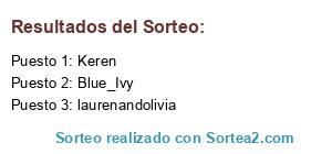 Lista de participantes: _NessY_, -(SuMMerLoVe)-, Abby, Abropisa, Abueladeroberto, Acandemor, Agnesvk, akiisha, Alabama, alesa, always, Anezka, Anita, Annabel Lee, Annah, annxcrush, anxa, artemisa0914, Ayla1, Azazel, becomebulletproof, Beto92, Blue_Ivy, Britishland, Candy Girl, Chanel, CharlotteBang, ChchchcherryBomb, chicles, christtinita, Claire Fisher, Codes, comment, Cora63, Cósima, cris*737, Crisalida, dafne78, datenshiblue, Dayana, Diamante, Doraemon, Dragna, Dynamite Diva, Elianne, equitania, Erica, Espechica, Evadine, Fashion23, Folle, Francie, Galbadia, galway, Garp, georx__, Heirloom, Hyrule, HySL, Illana, Imwatchingyou, Inguz, Irati, Istify, Jolene, kasia, Kate, Kauila, Keren, kerkyra, kimmidoll, Koalita, Krystal, lalalala04, Lana, lareinadeldesierto, laurenandolivia, Lauss7, LaVecinaMorena, Laylah, Ldysmle, Leia Organa, L., Licorne, Likis, Lili17, Liukin, LlámameLola, llubi4, Lou, Lunnaris, m▲d◬mme☥m◉rg⧊n◮, Margaret, Marramew, Marv, Melindabea, Mieze, mikaela, Mimarpe, minis, Nahir, Neko, opi2, paulaula, Perracallejera, Peti, Pocahontas, roreray13, Ruliña, saltaconmigo, Samsara, Sandrarg, serena, Serentra, Serotonina, Sidvi, silk_pearls, SnoopyCrisprCas, sokanifrus, Soleada, SueEllen, Suki, Suspiria, Tam, Tangerine, Testerbier, Tingui, Topiflor, torron, truese, uauei, umea, Valverde, Veranito, Verena, WideAwake, winter cards, Wolfie, xaana.
