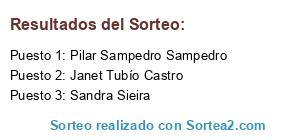 Lista de participantes: Silvia Laranga Piñeiro, Damian Muñiz, Pilar Sampedro Sampedro, Victor Araujo, Irene Caamaño Leon, Maria jose Ferradas Carballo, Silvia G. Mirón, Berta Castro, Oscar Lot, Paxaradas de punto, Cristina Muñiz Santos, Mara Castro, Janet Tubío Castro, Lisi Tubio Castro, Alberto Tubio Castro, Mari Cabo, Olalla Figueira Castaño, Sandra Sieira, Alba Gutierrez Ventoso, Xabier Vilariño, Maria Jose Garcia, Lidia Faro Rodriguez, Nona Nicoleta Ispas, Natisan regalos-decoracion, Loli Regueira, Pau Pernas.