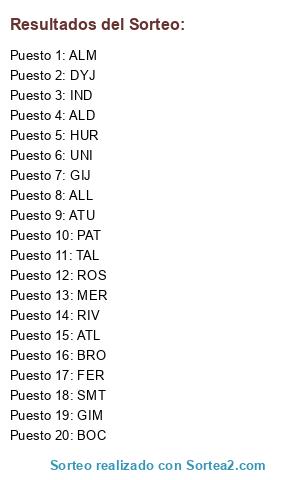 Lista de participantes: ALD, ALL, ALM, BRO, ATL, ATU, BOC, DYJ, MER, FER, GIJ, GIM, HUR, IND, PAT, RIV, ROS, SMT, TAL, UNI.