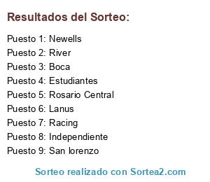 Lista de participantes: River, Boca, Lanus, Estudiantes, Newells, Rosario Central, Independiente, Racing, San lorenzo.