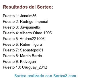 Lista de participantes: Javipaniello, Martin Barrio, Kidvegan, Jonalm86, Uruguay_2012, Ruben figura, Andres221006, Alberto Olmo 1995, Rodrigo Imperial, Sebastopol81.
