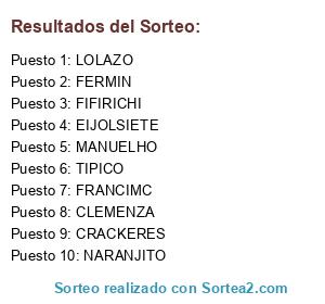 Lista de participantes: shevaoscar7, Leos96, Ittz Faddish, FPMX ninyaku, Spanishmex, FranceRR, David5489, Richy1096, cetis (alonso), cetis (manuel), Chicharito Mx, oosornio23, T0tt1, P3RR0BLANC0, Tonyvega05.