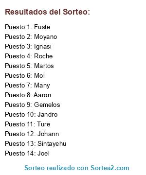 Resultados del sorteo: