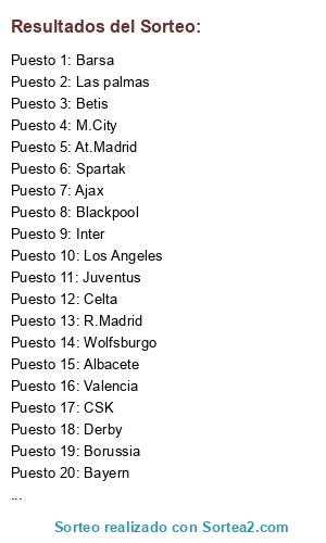 Resultados del sorteo: