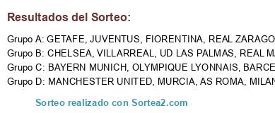 Lista de participantes: BARCELONA, REAL MADRID, AS ROMA, JUVENTUS, MURCIA, FIORENTINA, CHELSEA, BAYERN MUNICH, MILAN, OLYMPIQUE LYONNAIS, GETAFE, UD LAS PALMAS, REAL ZARAGOZA, PSG, MANCHESTER UNITED, VILLARREAL.