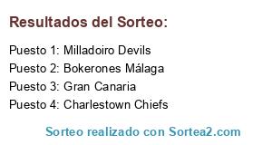Lista de participantes: Milladoiro Devils, Gran Canaria, Charlestown Chiefs, Bokerones Málaga.