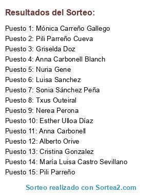 Lista de participantes: Alberto Orive, Anna Carbonell, Anna Carbonell Blanch (2 participaciones), Cristina Gonzalez (2 participaciones), Esther Ulloa Díaz, Griselda Doz (3 participaciones), Luisa Sanchez (2 participaciones), María Luisa Castro Sevillano, Mónica Carreño Gallego (2 participaciones), Nerea Perona, Nuria Gene, Pili Parreño, Pili Parreño Cueva, Sonia Sánchez Peña, Txus Outeiral (3 participaciones), Txus Outeiral.
