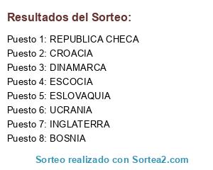 Lista de participantes: BOSNIA, DINAMARCA, INGLATERRA, CROACIA, ESLOVAQUIA, ESCOCIA, REPUBLICA CHECA, UCRANIA.