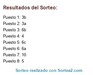 Lista de participantes: 3a, 3b, 4, 5, 6a, 6b, 6c, 10.