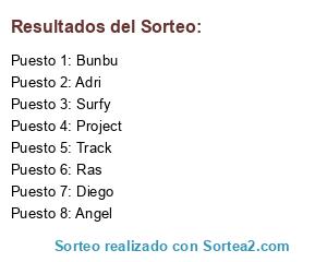 Lista de participantes: Ras, Track, Diego, Adri, Bunbu, Project, Angel, Surfy.