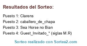 Lista de participantes: Guest_Jalccer_* , emilito28ikki, Guest_jt_*, yuberuruzado, vicio, maaggoo, Alkaid, inu654, Clarens, Agathos, Hyoga^-^, Tvboy, setolam, migeru, Guest_Invitado_* (siglas M.R), fcarrizo, creeper, Guest_Morenno_Dattebayo_* , caballero_de_chapa, Aries no Shion, MINERVA-2009, Guest_Invitado_* (siglas CM), Guest_Invitado_* (siglas FP), IoScylla, megatron , truejackie, Sea Horse no Bian, m4x1m0, Zosirium, JeroMAN.