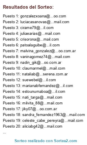 Lista de participantes: @yadisanchezc, @suewebel, @laramol23, @nadin_gik, @sandramir01, @ana_franciaa, @ana_vero_123, @axia_start, @barbara_camano, @caryivonnore, @celeste_cabe_pereyra, @claumarmel, @crisorona, @cristina.g.r.silva, @elikeitelman, @estefaniamacc, @flavlepo, @grazianarusso, @guillenpilar, @lauratolosa, @leila-vasta, @lodejesi_muaa, @macekla, @marianaestherc, @maviglesia, @mceballos2006, @meryblue22, @mirtamiralles, @nataliab, @nofueasi, @prisciladelliquadri, @sabrinaestevez, @solcito2k, @vaninagomez74, @vcaprarulo, @v-vir, @wandasrg, @anka16, @gonzalezxoana, @ARappa, @catrycalvo, @luciacasanovas, @natu_9889, @zaira_filippelli, @cirame79, @juliet100183, @laura-garcia-marti, @mclaraviviano, @nataliadilallo, @estefania-sola, @vivianarivero70, @marolandi02, @a_claudia_alejandra, @adrym13, @anitabrullo, @ceciliabellone, @cris_morocha, @eliana.m.ortiz, @ferchu83_mary, @florencia.bergara, @guillerminadenapole, @hepg6, @juliaearias, @lali.lahoz, @mariafernanda_mfgt, @mbecerra, @melina.87, @mlaura-rosales, @monicailarraga, @paimonetto, @pamelanassif, @sabrinagarbu, @segovia_gisele, @sol_86_19, @sol_ariana, @tamaradecunto, @conyabu, @sandra_fernandez1963, @beatriz_lugo, @wiber7, @anytani, @clarisamail, @dentaldmd, @erikis_112, @imc_1972, @jiky07, @ka63, @katherin_sossa, @licmvallegri, @marianabfernandez, @marianaorigone, @mariela.sikora, @mcbuiatti, @momischor, @nanablopez, @nati_targa, @patoalaguibe, @pilimigliardi, @rodermar, @rodriyanina1, @sandrasvibel, @sandris.1812, @silviaegeny, @vipelle, @patri59, @yanina_abril, @bereniceb, @bichisbymelenallanes, @akarirod, @estounumaboa, @gadeacecilia, @ianymaca, @jimem_84, @julia_centanni, @juro704, @lagigis, @laudc18, @laura, @lorenagimenez19, @m_a_c_a_87, @mahoma17, @malvina_gonzalez, @milvita_88, @rajeltaraman, @rolandofernanda, @rominanatalia19, @roxana.versace, @tamara.gebhart, @valeriacena, @adrianagalus, @alejandrina.vidal, @centurion_sole, @cintiacoria, @giyomay, @lorenagutierrez-, @lucila, @marciabarneche, @silsanchez12, @bcgonzalez1977, @mora-lety, @patriciaflorenciah, @stellaromero, @soledadmoreno898, @aliciabg42, @carmenunger86, @florlamponi, @lenita_77, @marinih, @paula_vanesa_martinez, @paulaberti, @vanileyes, @silviaazul.