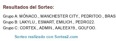 Lista de participantes: ADMIN., CORTEX., MANCHESTER CITY., MÓNACO., BRASILEÑO., PEDRO22., EMILICH., GOLFOO., PEDRITOO., AALEEX19., LAKYLU., ESMART.