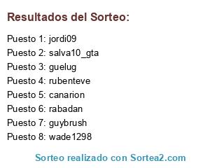 Lista de participantes: jordi09, canarion, wade1298, guelug, rabadan, salva10_gta, guybrush, rubenteve.