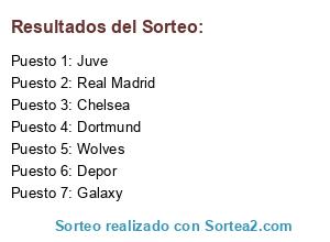 Lista de participantes: Real Madrid, Chelsea, Wolves, Galaxy, Dortmund, Depor, Juve.