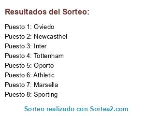 Lista de participantes: Sporting, Tottenham, Oviedo, Inter, Athletic, Oporto, Newcasthel, Marsella.