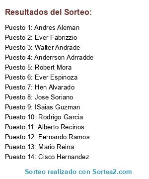 Lista de participantes: Cisco Hernandez, Walter Andrade, Ever Fabrizzio, Robert Mora, Rodrigo Garcia, ISaias Guzman, Andres Aleman, Mario Reina, Alberto Recinos, Anderrson Adrradde, Hen Alvarado, Ever Espinoza, Jose Soriano, Fernando Ramos.