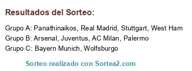 Lista de participantes: Stuttgart, AC Milan, Palermo, Wolfsburgo, Real Madrid, Panathinaikos, Juventus, Bayern Munich, West Ham, Arsenal.