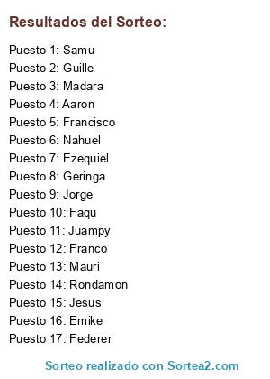 Resultados del sorteo: