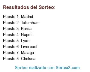 Lista de participantes: Lyon, Malaga, Madrid, Napoli, Barsa, Liverpool, Chelsea, Totemham.