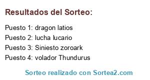 Lista de participantes: Siniesto zoroark, lucha lucario, volador Thundurus, dragon latios.