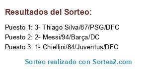 Lista de participantes: 1- Chiellini/84/Juventus/DFC, 2- Messi/94/Barça/DC, 3- Thiago Silva/87/PSG/DFC.