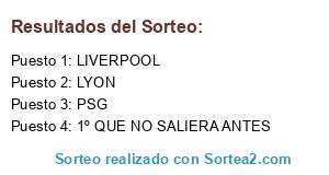 Lista de participantes: 1º QUE NO SALIERA ANTES, LIVERPOOL, LYON, PSG.